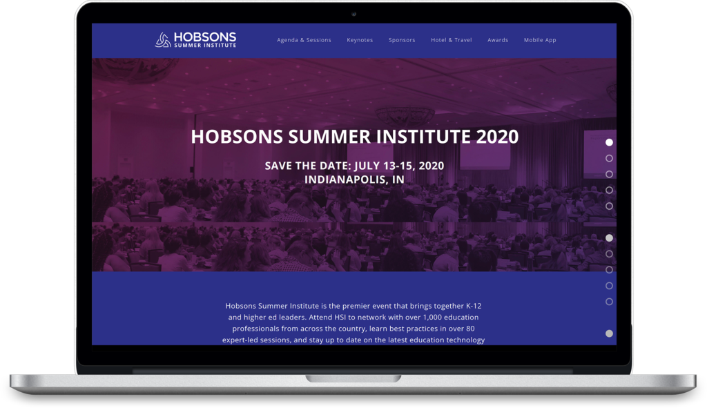 Hobsons provides educational software to thousands of educational institutions, helping K-12 students identify their strengths, explore careers and create academic plans. Each year Hobsons holds its Hobsons Summer Institute, with hundreds of education professionals from around the country in attendance. The Hobsons team takes the lead, and partners with Perfect PlanIt to support their team's creative efforts. This year, we created the event logo, website and overall design approach. As they created their own materials, we extended the look across signage and presentations for a powerful, cohesive vision.