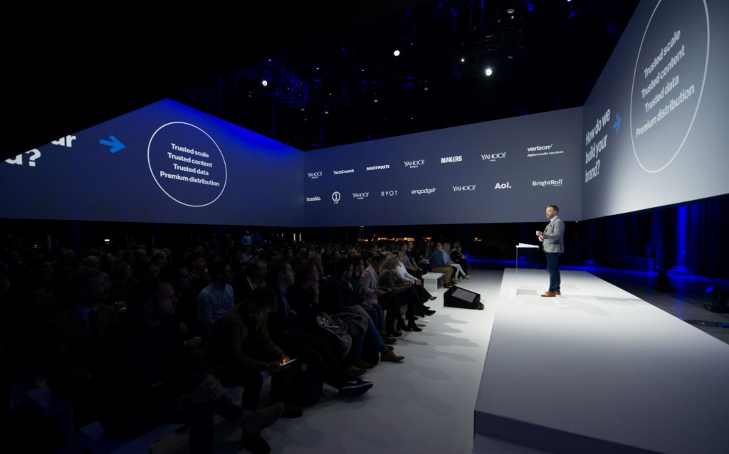 Oath, a subsidiary of Verizon, was scheduled to present at the IAB UK Digital Upfronts (in the television industry, an upfront is a gathering at the start of important advertising sales periods, held by television network executives and attended by major advertisers and the media). The team needed a high-impact, main stage presentation to match the setting, message and event purpose.